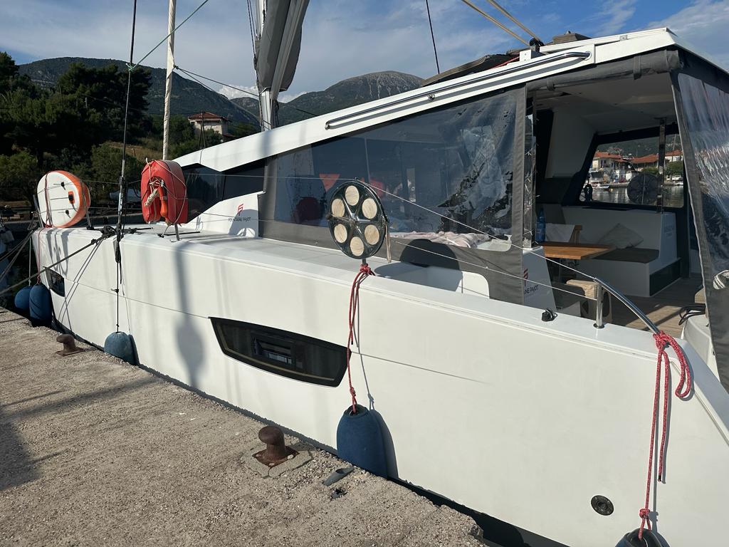 The beautiful Owner's Version (Maestro) Lucia 40 is a very comfortable cruising catamaran with all the important features such as a large cockpit, lots of interior volume, safe helm station and good performance. There is a generator and air conditioning, heater, washing machine and the price includes a Highfield 340 dinghy with 15hp outboard.