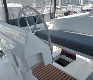 The mid level helm makes sailing easy with all lines led back to the winches on the coach roof and it is close enough to maintain contact with the cockpit and flybridge from the comfortable double seat whilst cruising.